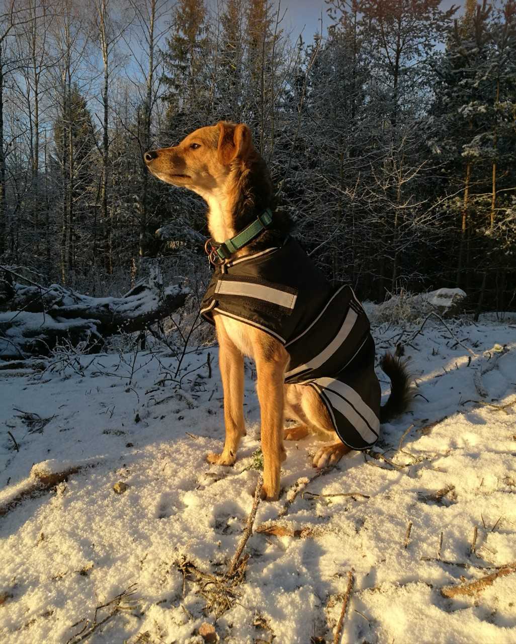 Koiran heijastava ulkotakki HG veden- ja tuulenpitävä koiranloimi kevyellä n.100g lämpövuorella. Koirantakin materiaali on teknistä , hyvin hengittävää Epoch breathe- comfort materiaalia joka pitää koiran olon kuivana ja mukavana.