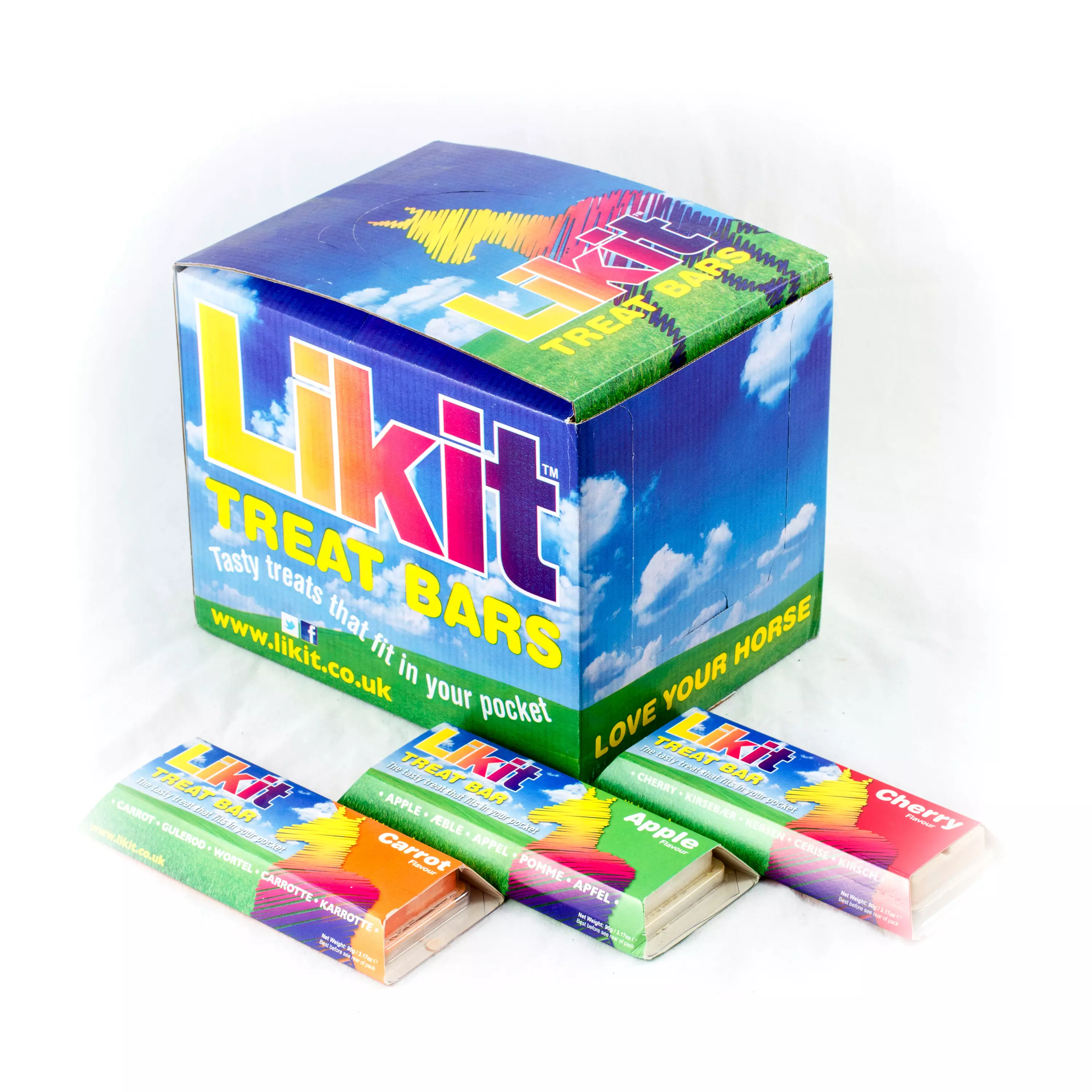 Taskuun mahtuva hevosen namipala patukka. Likit bar karkkipatukan paino 90g / 12palaa. Makuina omena, porkkana sekä kirsikka