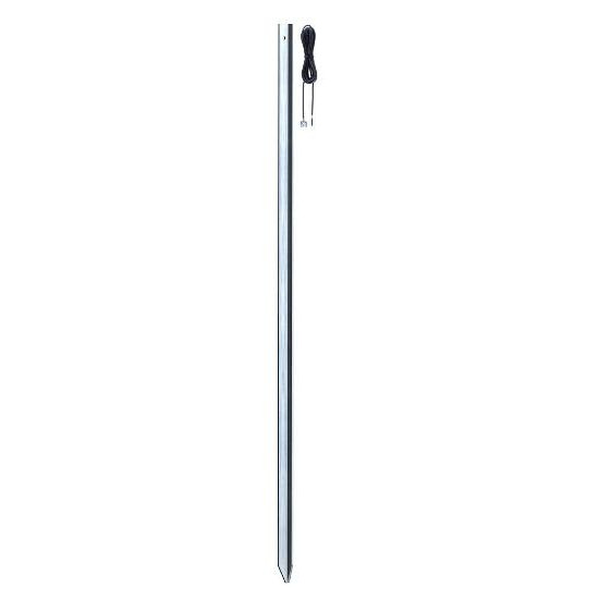Kuumasinkitty 1m maadoituskanki. Päästään teroitettu T-profiili. Mukana 3 m liitosjohto ruuveineen.