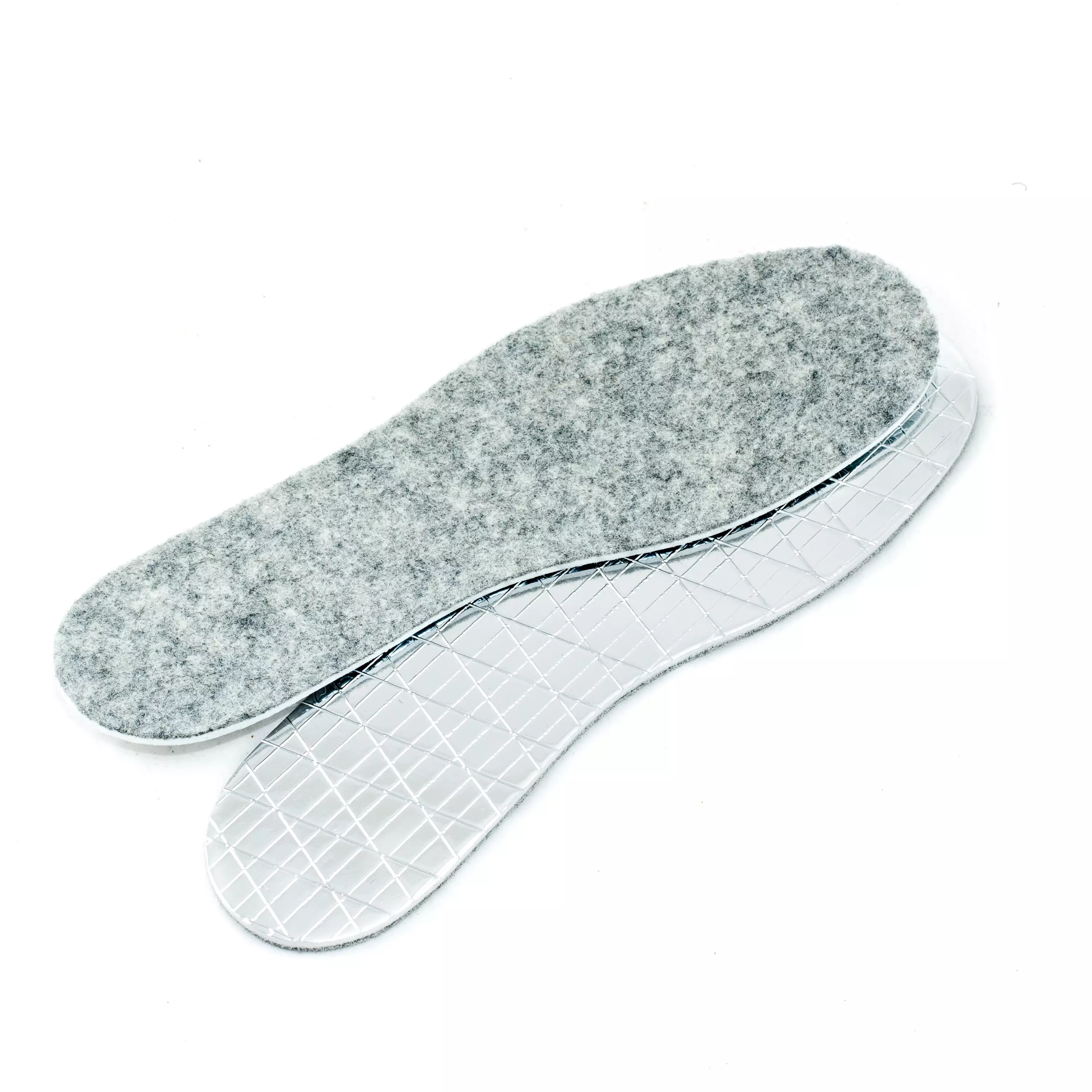 Jalkaa vasten lämmintä huopaa ja toisella puolella alumiinipinta, joka pitää lämmön kengän sisällä.