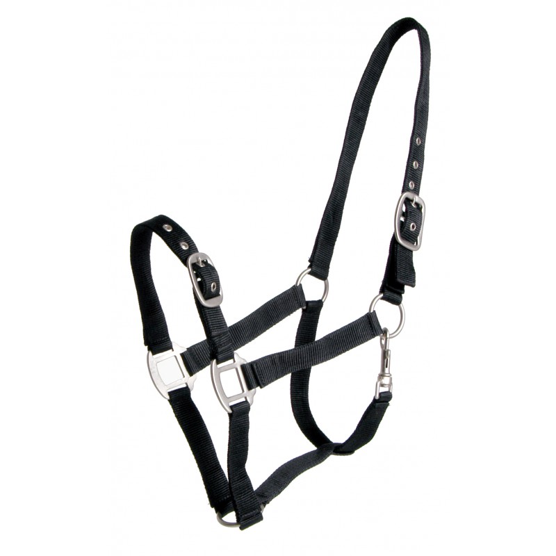 QHP turvalta-avattava riimu on kevyttä ja pehmeää nailonia. Riimu säädettävissä niskasta sekä turvan päällä. Leukaremmissä pikasolki.