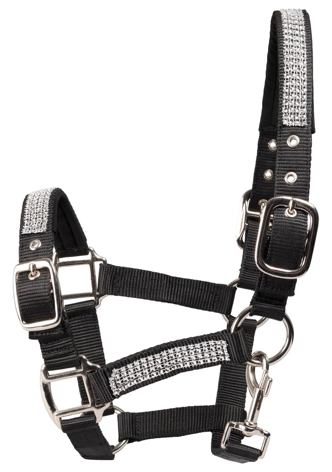 Globus turvalta-avattava riimu, jossa strassikoristeet turvan päällä, poskiremmeissä sekä niskaremmissä. Säätövaraa löytyy niskasta molemmin puolin sekä turvan päältä. Kevyt, mutta jämäkkä riimu.